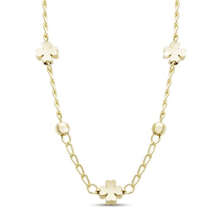 Un lănțișor de bun gust cu simboluri ale norocului sub formă de trifoi cu patru foi.