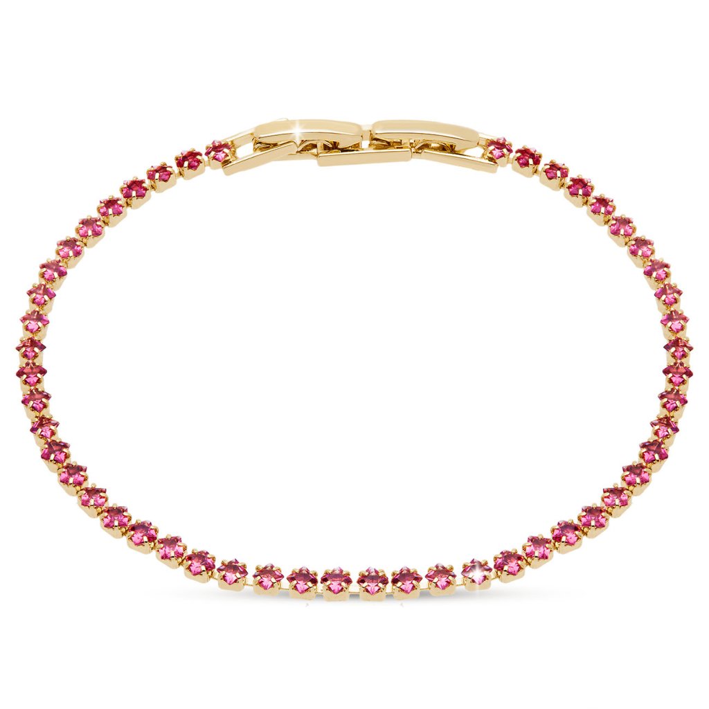 O brățară de tenis elegantă, care se remarcă prin finețe și farmec feminin. Zirconii cubici roz adaugă o notă romantică și o strălucire luxoasă bijuteriei. Un accesoriu excelent pentru ținutele de zi cu zi, dar și pentru ocazii festive.
