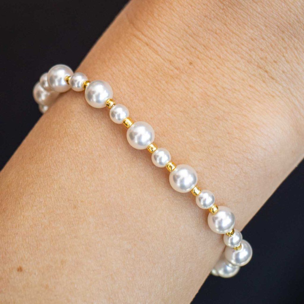 Un accesoriu delicat și atemporal care vă va sublinia eleganța naturală. Combinația de mărgele de diferite dimensiuni, în armonie cu elemente aurii, arată strălucitor și foarte precis. O alegere ideală pentru purtarea de zi cu zi și ocazii festive.