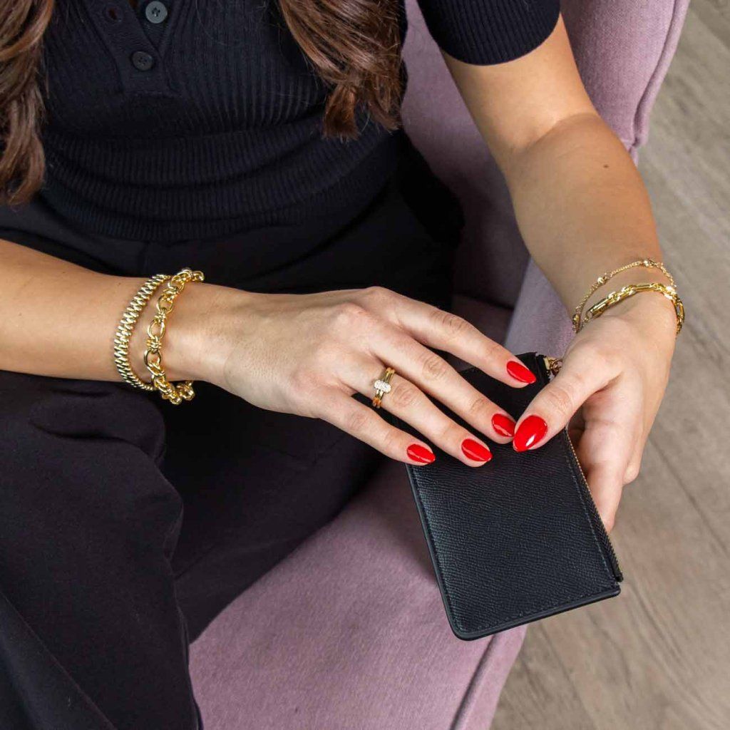 Metal rodiat, placat cu aur de 14K – Bijuteria este fabricată din metal rezistent, cu un strat de rodiu și aur de 14 karate, care îi conferă un luciu ridicat, o protejează împotriva zgârieturilor și asigură o durată lungă de viață fără a se înnegri. Datorită proprietăților hipoalergenice, este potrivit și pentru pielea sensibilă. Nu conține nichel.