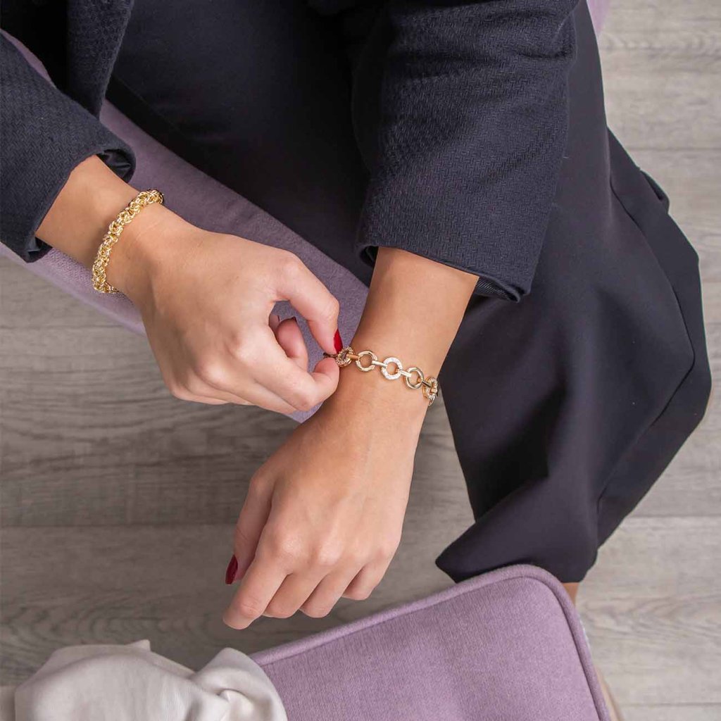 Brățară placată cu aur cu cercuri pline și cu zirconiu 3034