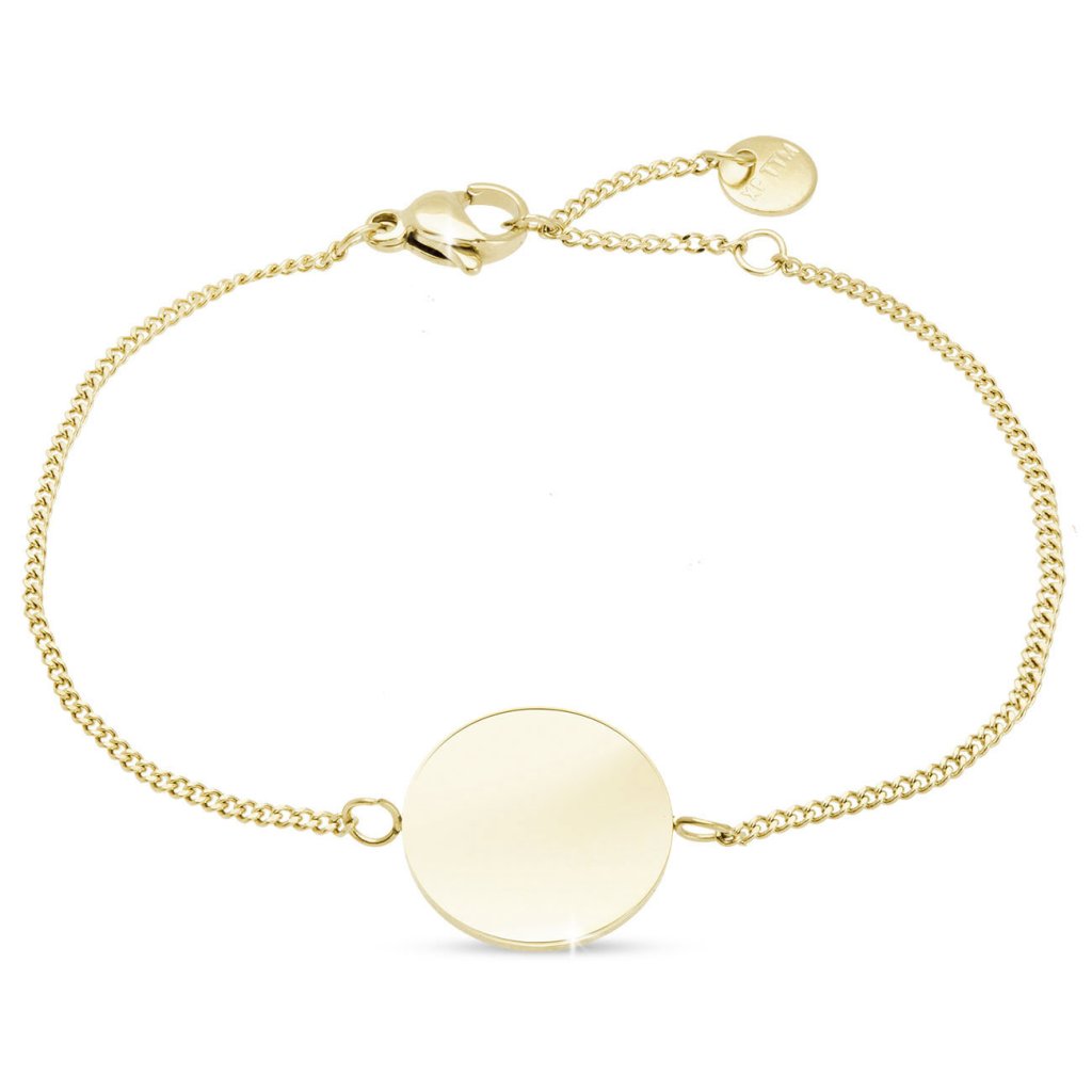 Brățara fină placată cu aur, cu medalion rotund, este un accesoriu elegant pentru fiecare zi. Designul minimalist cu suprafață netedă iese în evidență atât individual, cât și în combinație cu alte bijuterii. Ideal și ca un cadou personal.