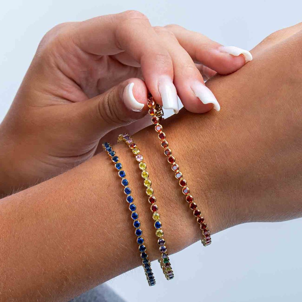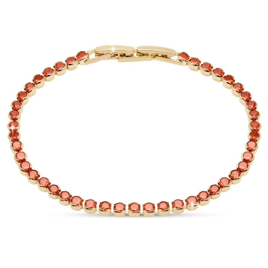 O brățară de tenis modernă și distinctivă, cu zirconiu cubic portocaliu, este o alegere excelentă pentru femeile care nu se tem de culoare. Nuanța strălucitoare a pietrelor adaugă energie și stil bijuteriei, în timp ce placarea cu aur și baza rodiată asigură durabilitate și un aspect elegant.