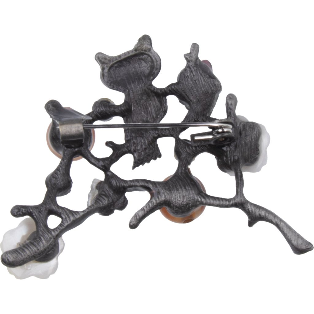 Broșă foarte izbitoare în formă de crenguță cu o bufniță, decorată cu pietre și zirconiu cubic.