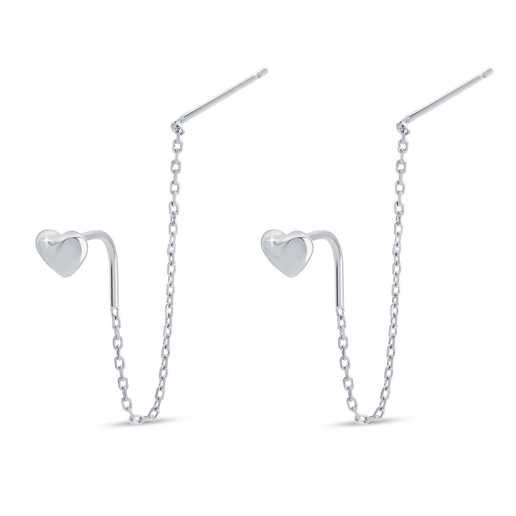 Cerceii eleganți cu lanț în formă de inimă reprezintă echilibrul perfect între minimalism și eleganță delicată. Cu un finisaj lucios argintiu, arată curat și sofisticat. Datorită suspensiei fine a lanțului, copiază frumos mișcarea și adaugă aer și lejeritate aspectului general. Potriviți pentru purtarea de zi cu zi și pentru ocazii speciale.