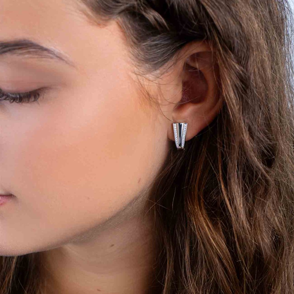 Acești cercei mai pronunțați, din argint Ag 925/1000, combină liniile curate cu strălucirea delicată a două rânduri de zirconii clare. Forma ușor evazată are un aspect modern și, în același timp, foarte elegant. O alegere ideală pentru femeile care caută o bijuterie decentă, dar totuși atrăgătoare, pentru ținutele de zi cu zi și festive.