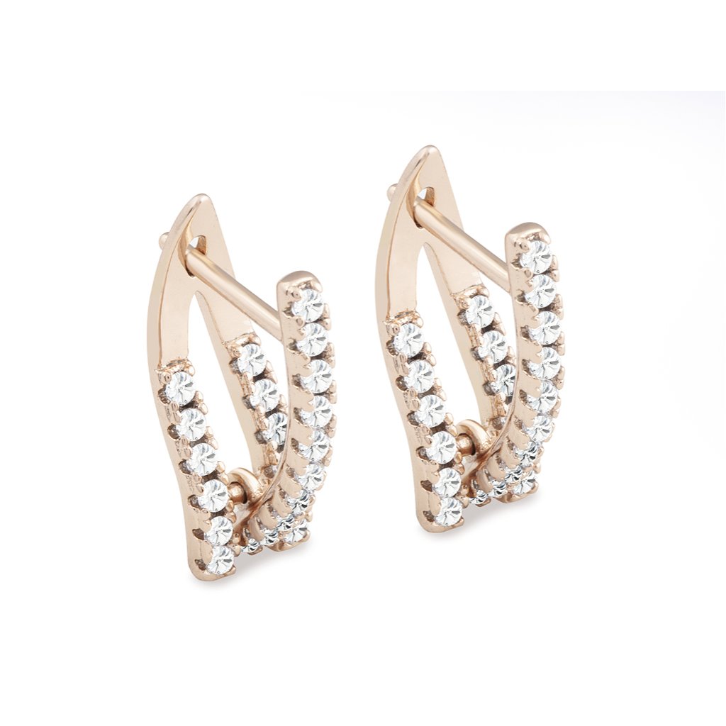Cerceii stilați, cu un design delicat arcuit, sunt încrustați în întregime cu zirconii mici și clare, care reflectă frumos lumina la fiecare mișcare. Datorită prelucrării precise și placării cu aur de 18 karate, bijuteria arată luxoasă și atemporală.
