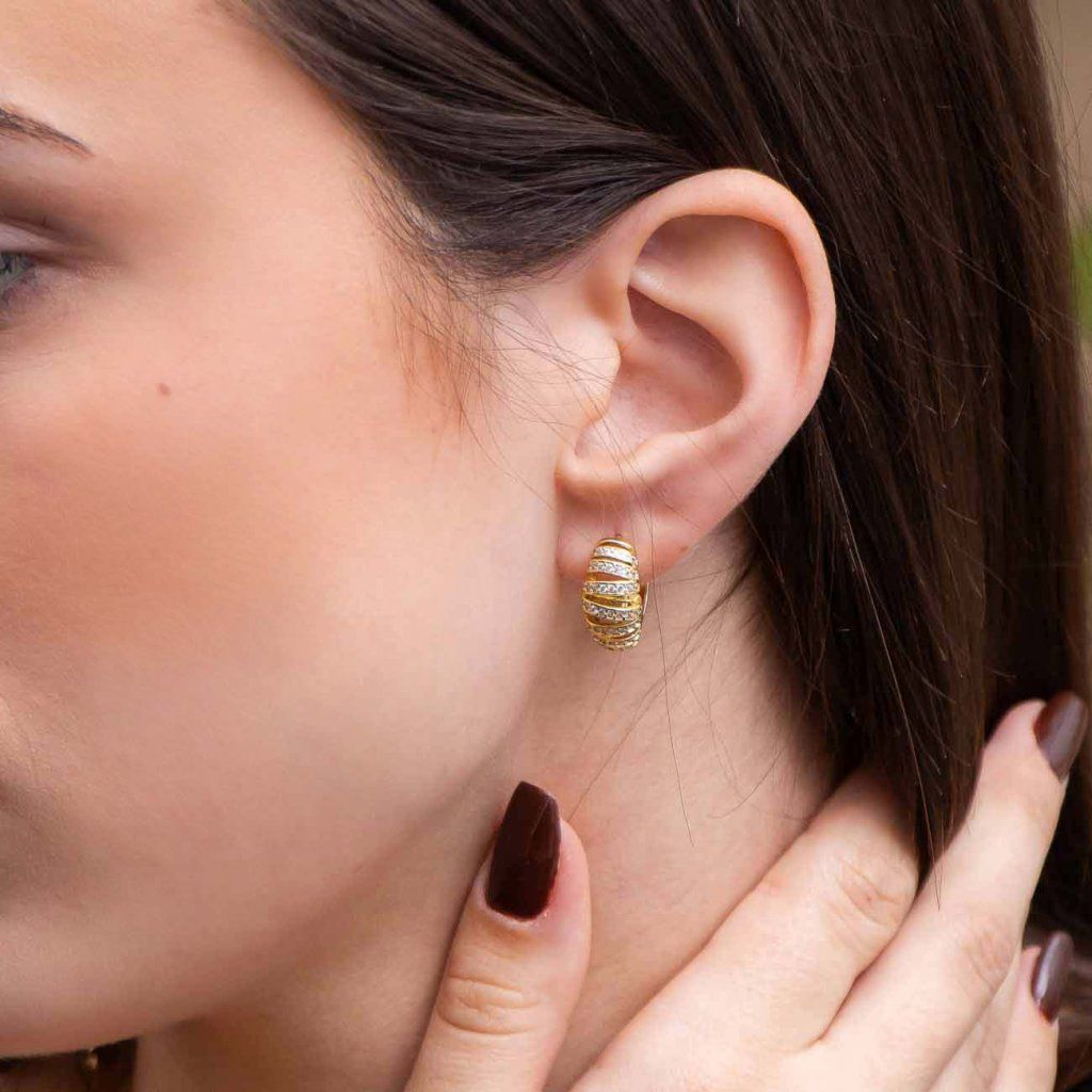 Cercei placati cu aur din metal rodiat, cu un design stratificat distinctiv. Un accesoriu radiant și atemporal pentru un stil elegant.