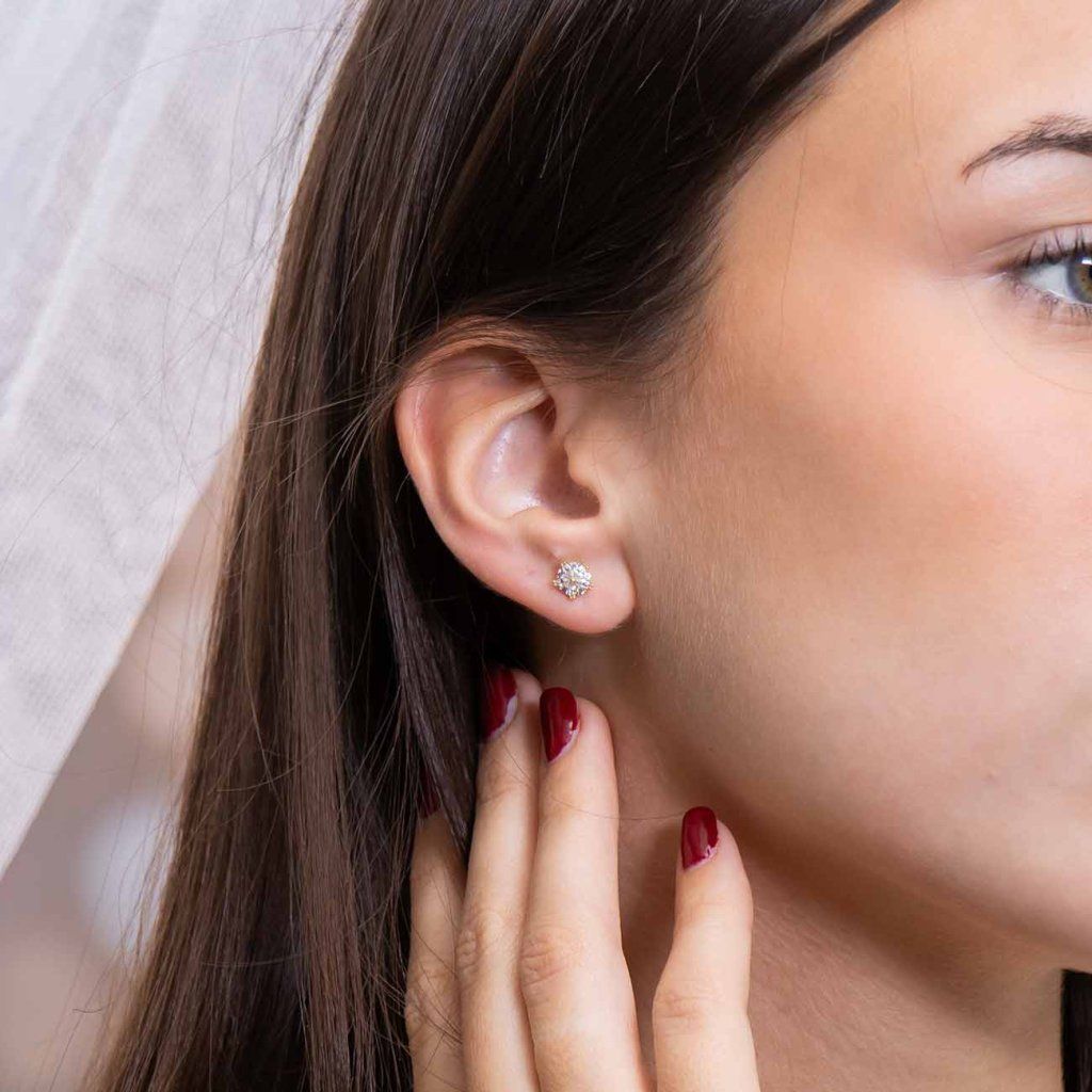 Cercei delicați și fermecători, cu motiv floral, alcătuiți din zirconii clare, șlefuite cu precizie. Strălucirea radiantă a pietrelor, în combinație cu nuanța caldă a placării cu aur, creează o bijuterie romantică, care îți va sublinia feminitatea și farmecul natural. Ideali ca accesoriu pentru rochii de ocazie, dar și pentru ținutele de zi cu zi.