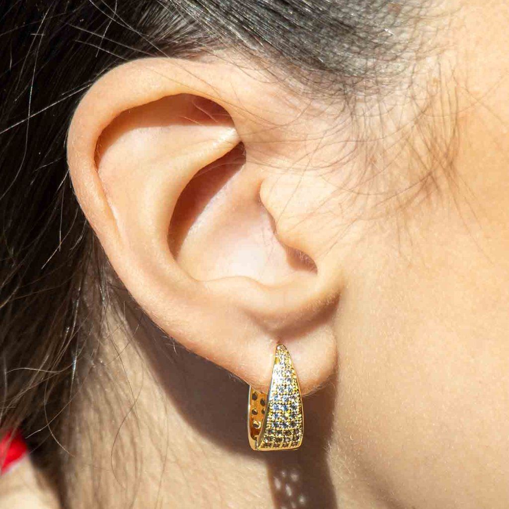 Acești cercei vor atrage atenția prin forma lor distinctă și zirconiile montate cu precizie, care conferă bijuteriei un aspect strălucitor și luxos. Datorită placării cu aur de 14K, aceștia au un aspect elegant și atemporal, devenind astfel un accesoriu de nelipsit pentru orice ocazie. O alegere ideală pentru femeile care iubesc strălucirea subtilă combinată cu un stil îndrăzneț.