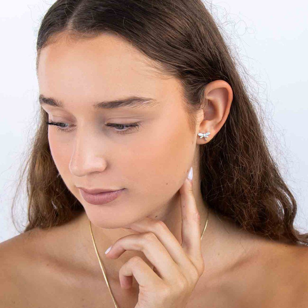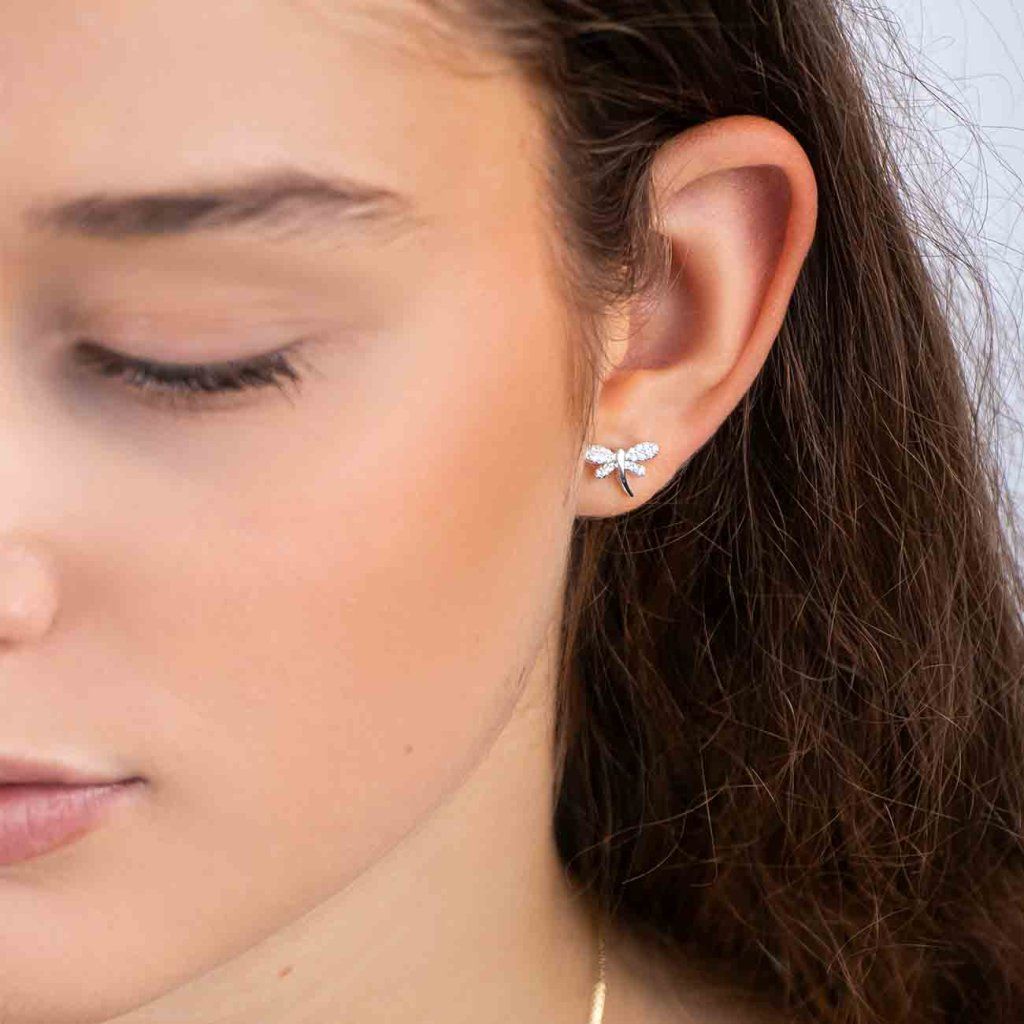 Cercei de argint delicati. Rodierea suprafeței bijuteriilor din argint conferă duritate, stabilitate și o rezistență sporită la factori externi precum uzura mecanică, zgârieturile, transpirația, produsele cosmetice și altele. Rodiul are proprietăți antialergice care previn iritarea pielii sensibile. Argintul este marcat cu ștampila de puritate 925.