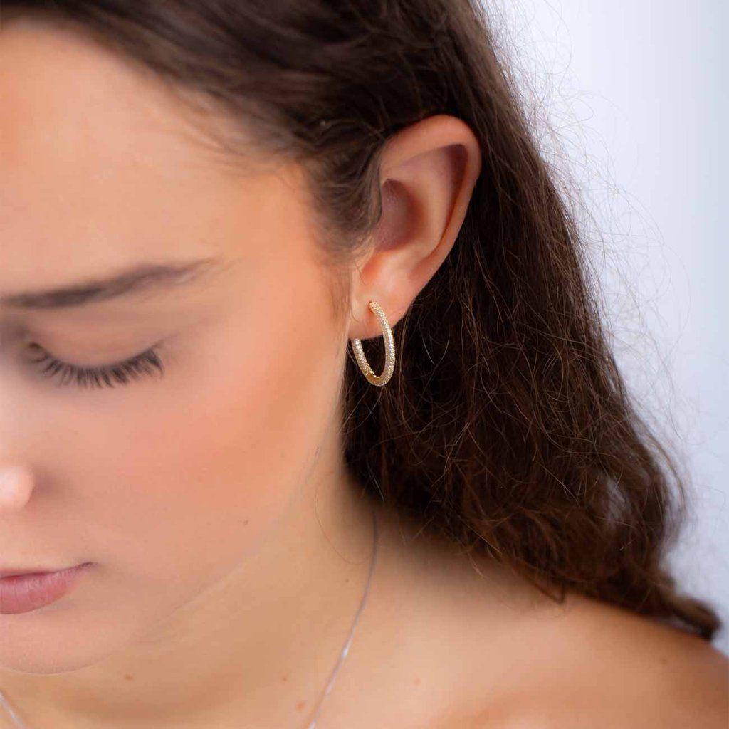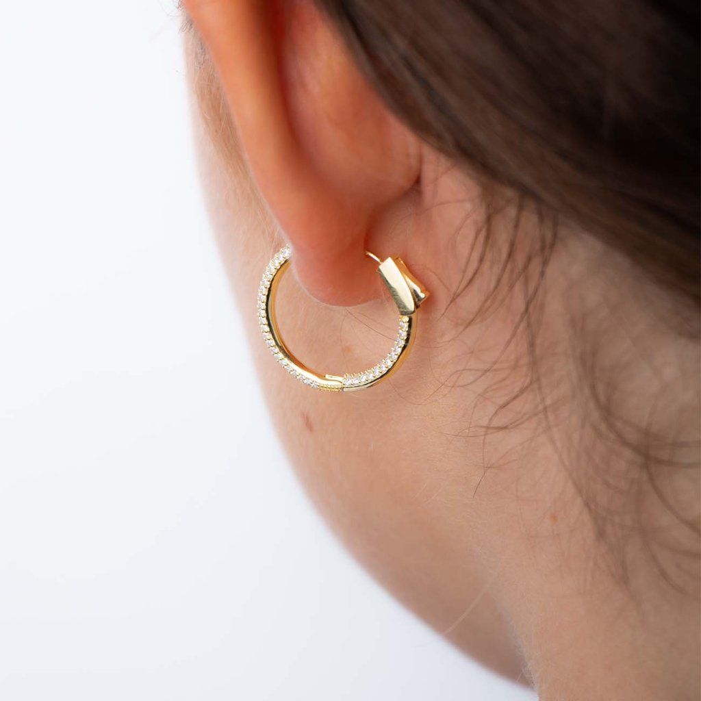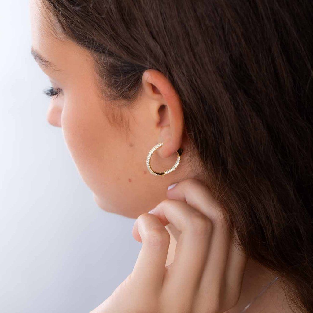 Cercei simpli și frumoși pe care îi puteți purta în fiecare zi și de care nu vă veți plictisi. Datorită montării de zirconii cubice mici, acestea sunt frumos strălucitoare și au o notă de farmec.