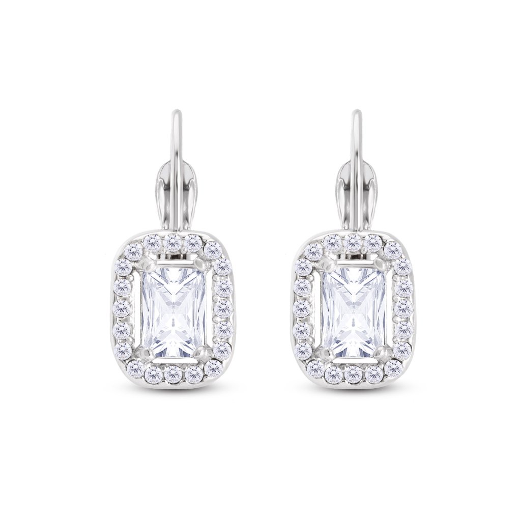 Cercei din oțel chirurgical, dreptunghiuri cu zirconi transparente 1002705
