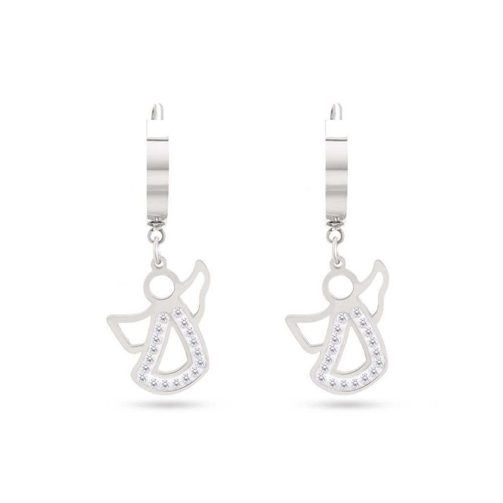 Cercei din oțel chirurgical, inel, înger delicat cu zirconi 1002707