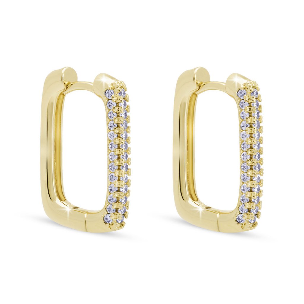 Forma elegantă, dreptunghiulară și linia strălucitoare de zirconiu fac din acești cercei un accesoriu remarcabil, care va adăuga un plus de sofisticare modernă aspectului tău. Completează perfect ținutele de zi cu zi și festive și se așează confortabil datorită închiderii practice.