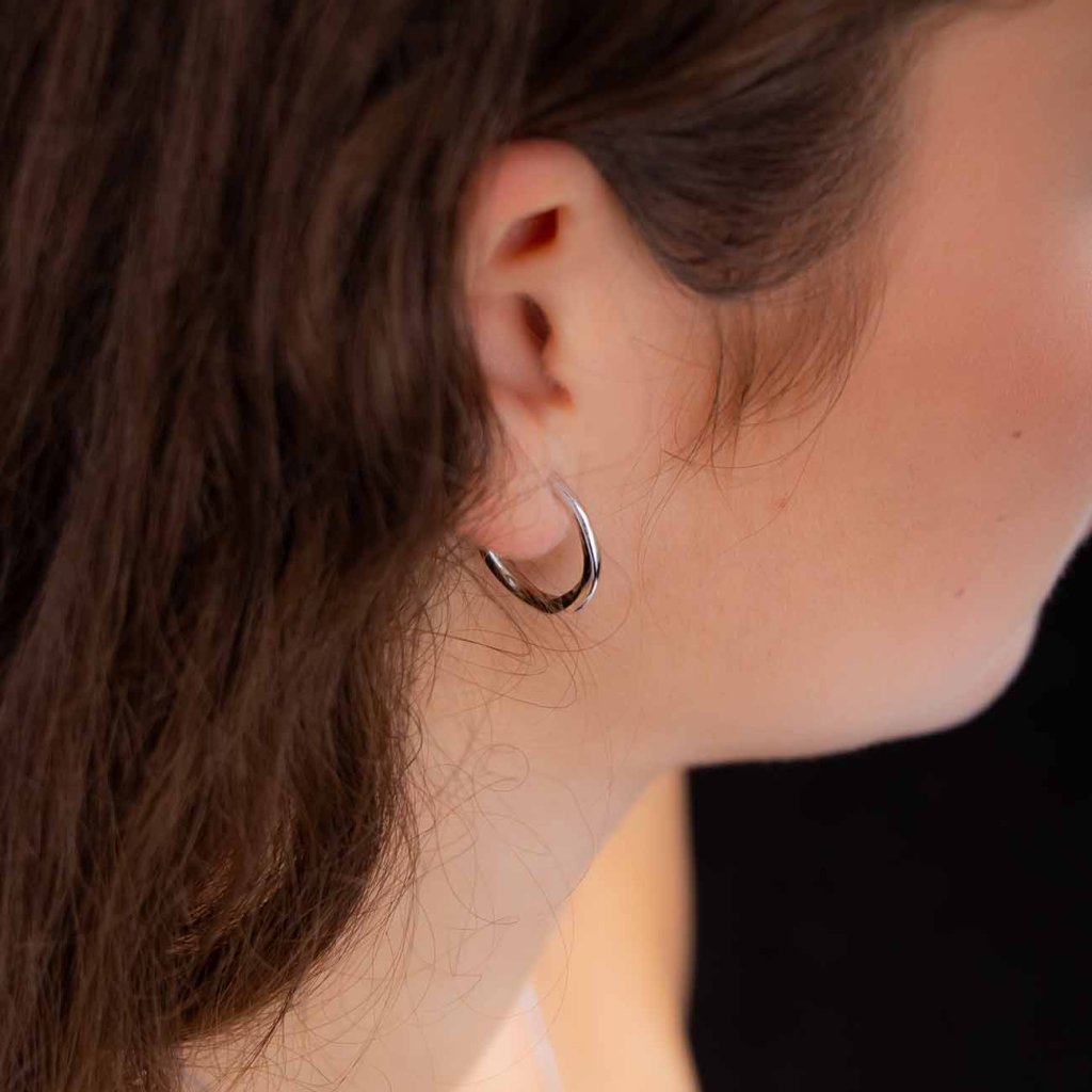Cercei de argint în formă ovală.