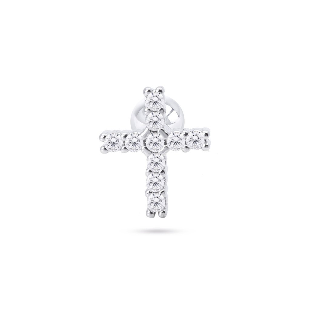 Cercei pentru o ureche din oțel chirurgical, cruce cu zirconiu cubic 9001648-3 Ellami