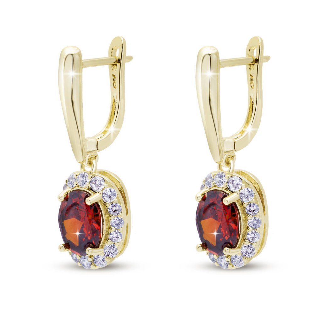 Cercei placați cu aur, cu cristal oval roșu și montură transparentă 3797