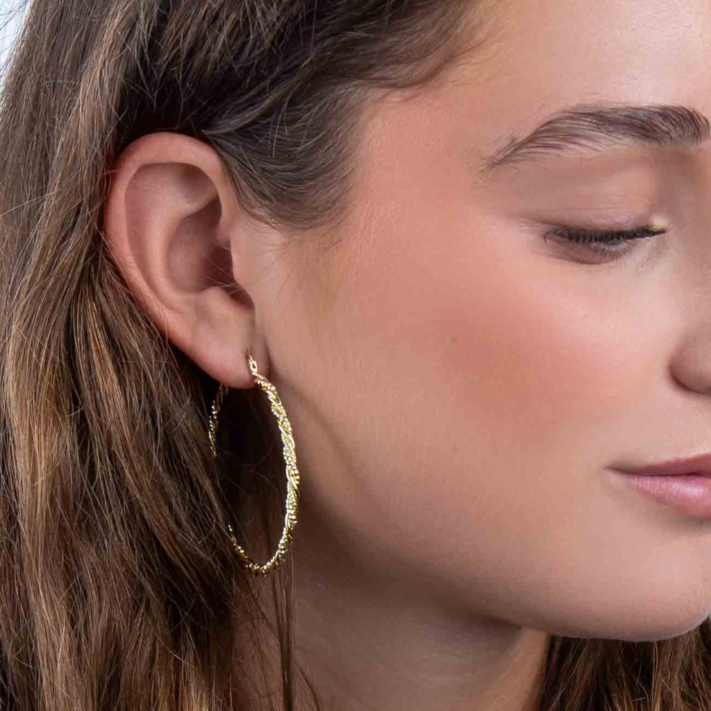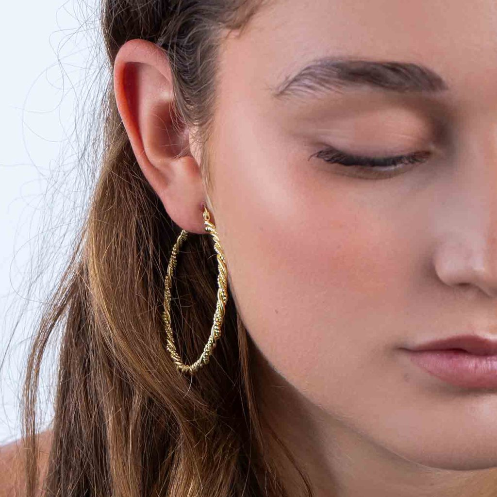 Cercei circulariStatement cu un elegant decor răsucit (twist), care atrag atenția de la prima vedere prin strălucirea și structura lor fină. Cerceii sunt ușori, confortabili și, datorită designului lor atemporal, se potrivesc cu orice ținută – de la purtarea de zi cu zi până la ocazii speciale.