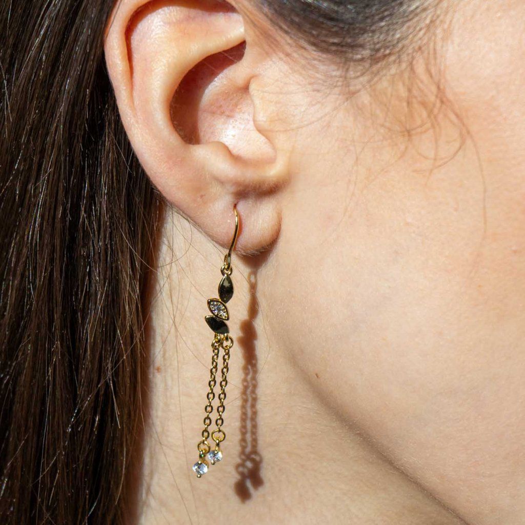 Designul lung, cu mișcare fină, conferă cerceilor lejeritate și, în același timp, un efect distinct. Zirconiile strălucitoare, în combinație cu detalii precise, arată elegant și subliniază feminitatea dumneavoastră la fiecare pas. Această bijuterie atemporală este alegerea ideală pentru ocazii festive, dar și pentru ținutele de seară.