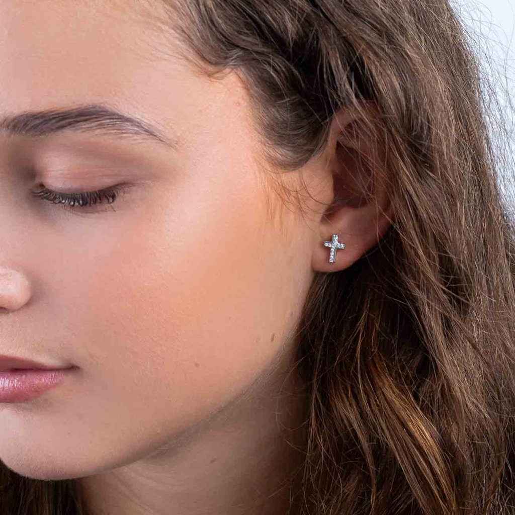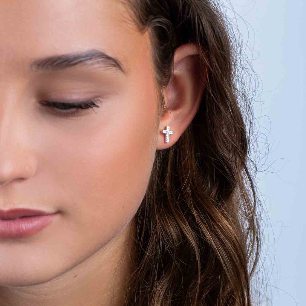 Cerceii eleganți în formă de cruce sunt împodobiți cu zirconii clare strălucitoare, care le conferă o strălucire delicată și un aspect nobil. Designul lor curat este potrivit atât pentru purtarea de zi cu zi, cât și pentru ocazii mai formale. Forma minimalistă a crucii simbolizează credința, speranța și puterea interioară.