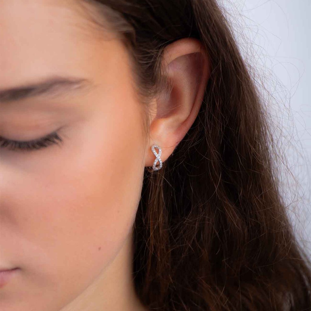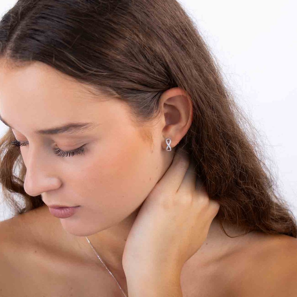 Eleganții cercei, sub forma unui simbol al infinitului fin împletit, reprezintă frumusețea conexiunii, a iubirii și a posibilităților infinite. Zirconii lucitori adaugă o strălucire orbitoare bijuteriilor, menținând în același timp delicatețea, făcându-le ideale pentru purtarea de zi cu zi și pentru ocazii festive.