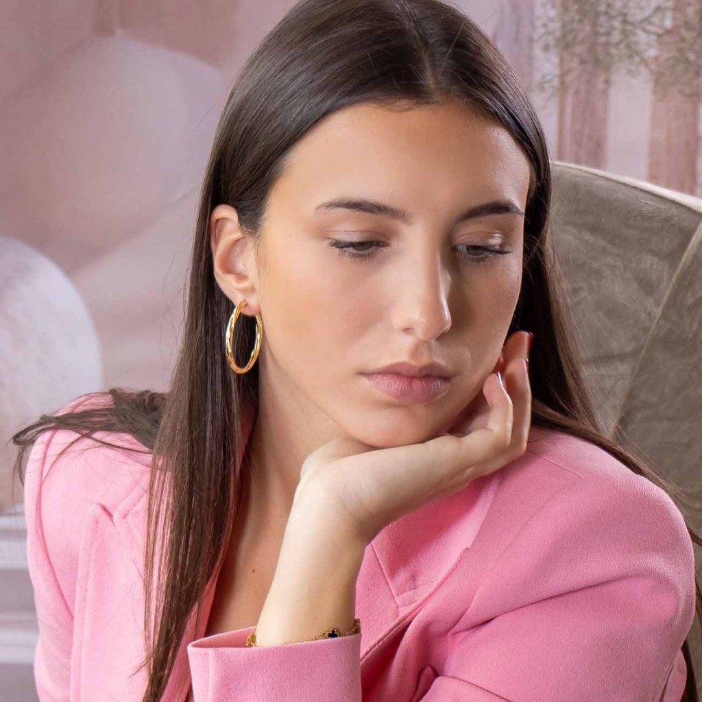 Acești cercei circulari clasici, dar ingenioși, te vor fermeca prin strălucirea lor și prin modelul gravat cu precizie, care adaugă o notă unică bijuteriei. Vor completa perfect atât o ținută de zi cu zi, cât și un look de seară.