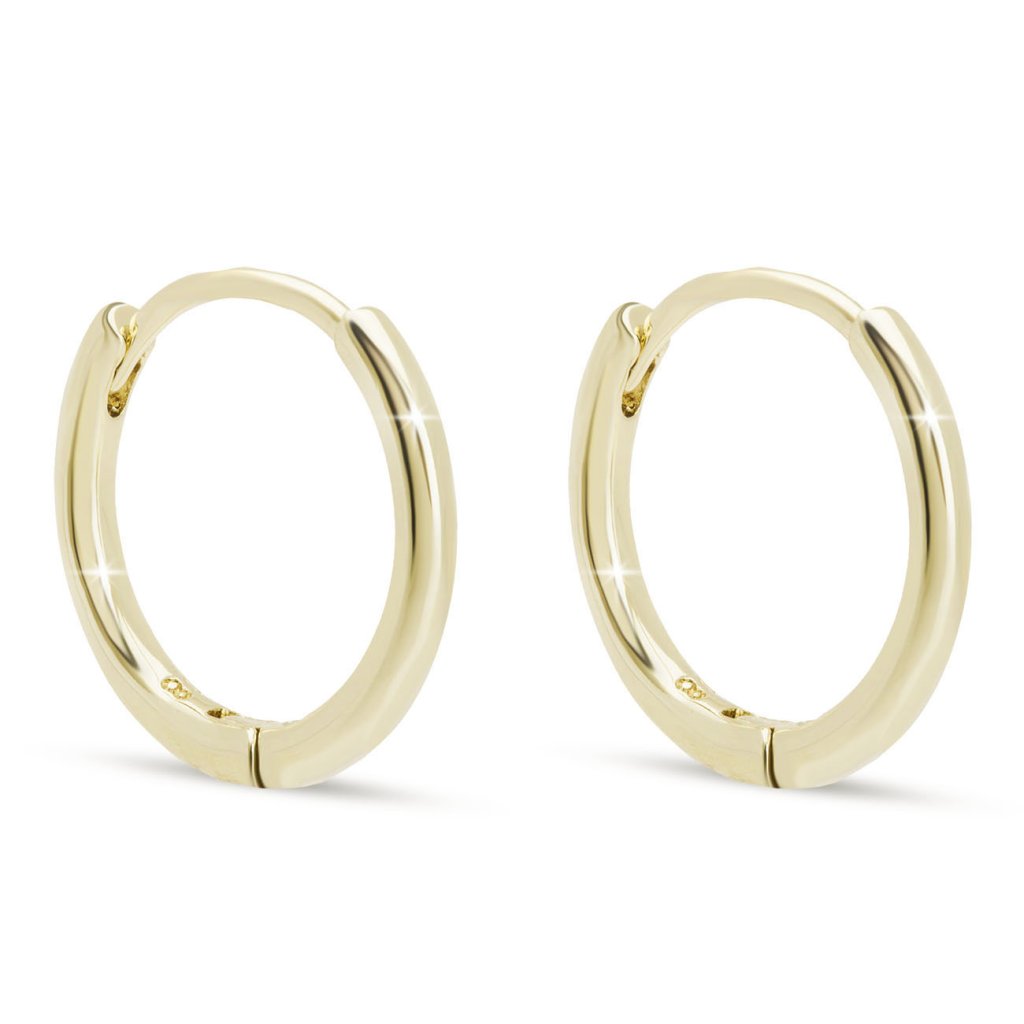 Cerceii clasici în formă de cerc, cu o rotunjire fină și un luciu ridicat, sunt alegerea ideală pentru eleganța de zi cu zi. Forma atemporală este completată de placarea cu aur de 14k, care adaugă o strălucire delicată și un farmec feminin bijuteriei.