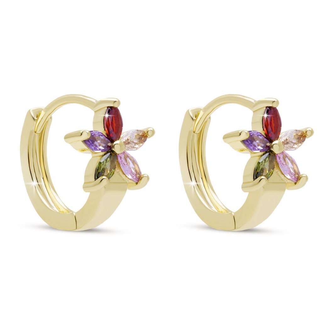 Cercei rotunzi placați cu aur cu floare din zirconiu colorat 3802