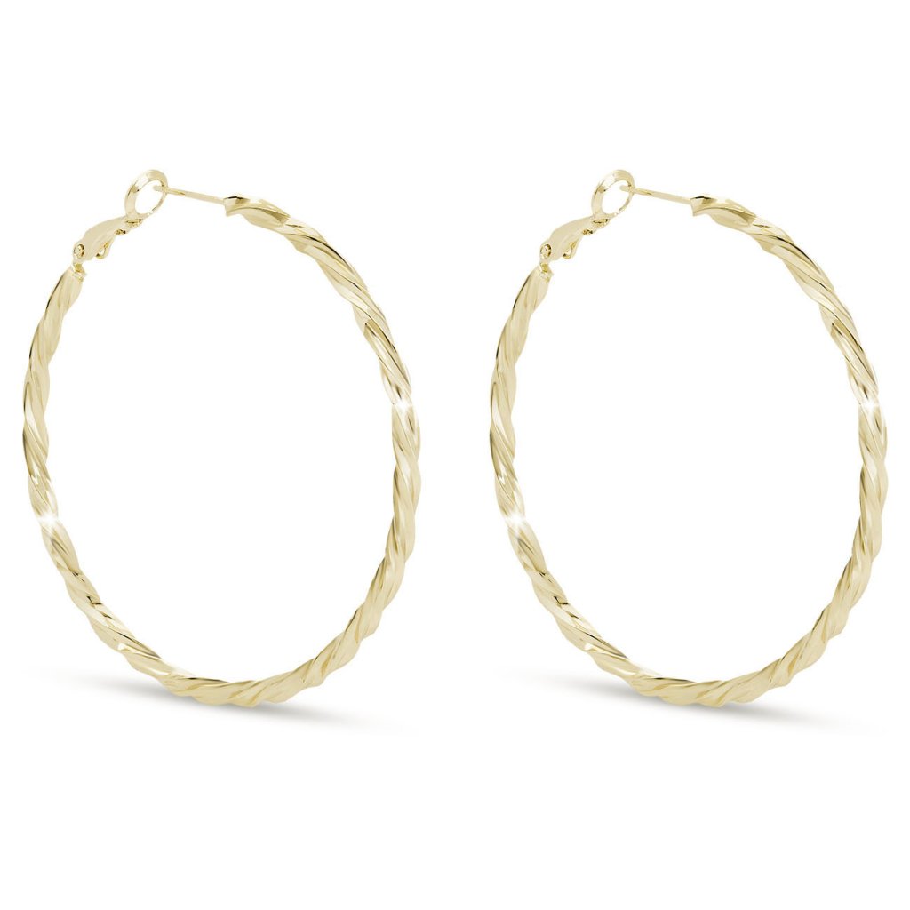 Cerceii circulari eleganți cu un model delicat răsucit combină forma clasică cu un detaliu original. Construcția ușoară și luciul distinctiv le fac un accesoriu excelent pentru purtarea de zi cu zi și pentru ocazii festive. Finisajul cu aur de 14k le accentuează farmecul feminin.
