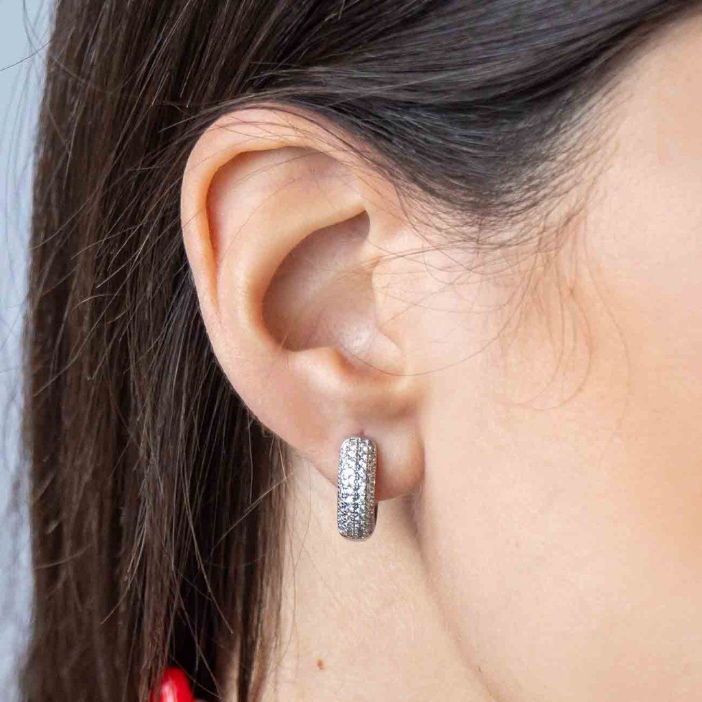 Cercei rotunzi placați cu rodiu și zirconiu 3993