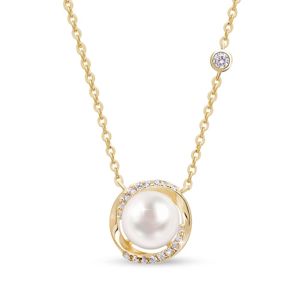 Colier argintiu cu perlă în ramă - placat cu aur de 14k 2508