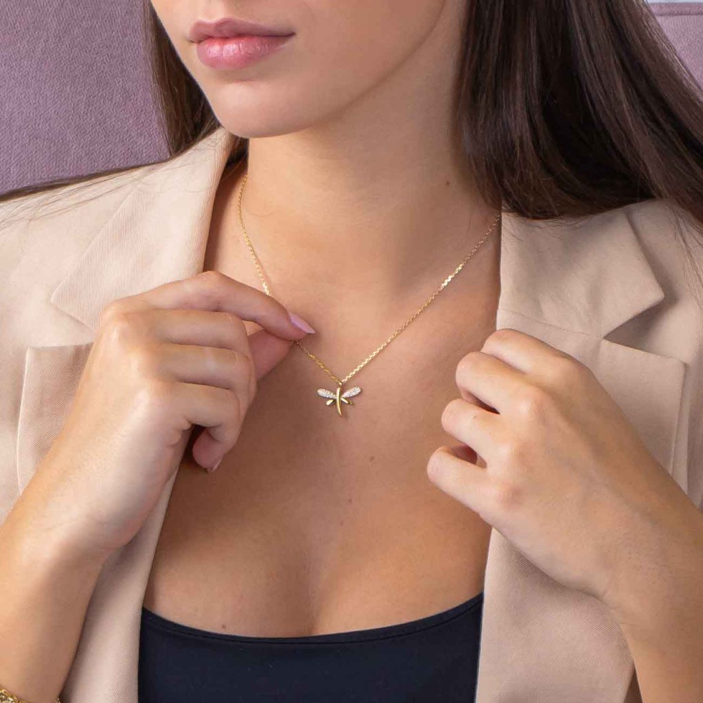 Colier cu pandantiv libelulă placat cu aur de 14k 2556