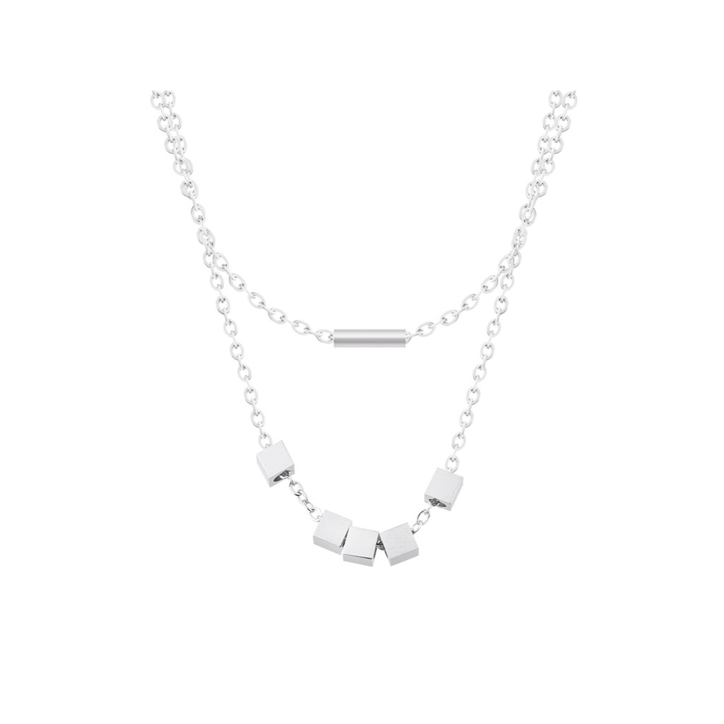 Colier de damă din oțel chirurgical, cu două rânduri și elemente geometrice fine 3001359