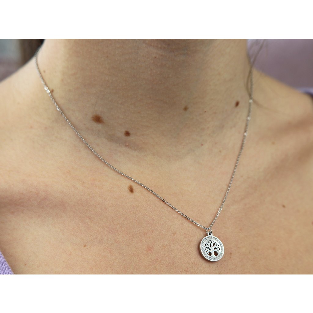 Colier din oțel inoxidabil cu pandantiv, copacul vieții cu zirconii 3001806
