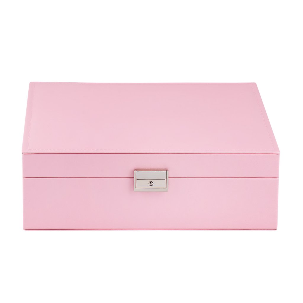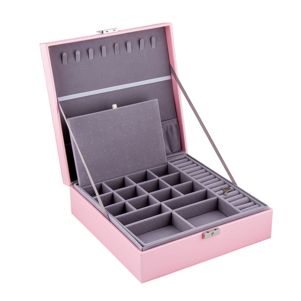 Această cutie de bijuterii roz luxoasă este locul perfect pentru a depozita în siguranță și cu stil întreaga colecție de bijuterii. Partea exterioară este fabricată din material PUde înaltă calitate, caracterizat prin durabilitate ridicată, întreținere ușoară și un aspect frumos și neted. Închiderea metalică conferă cutiei de bijuterii nu doar eleganță, ci și funcție practică - obiectele dumneavoastră de valoare vor fi întotdeauna în siguranță.