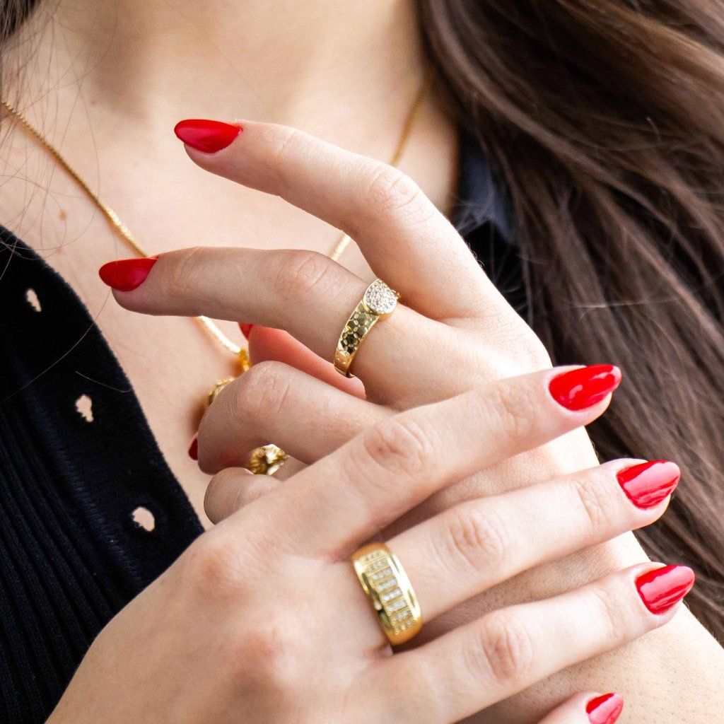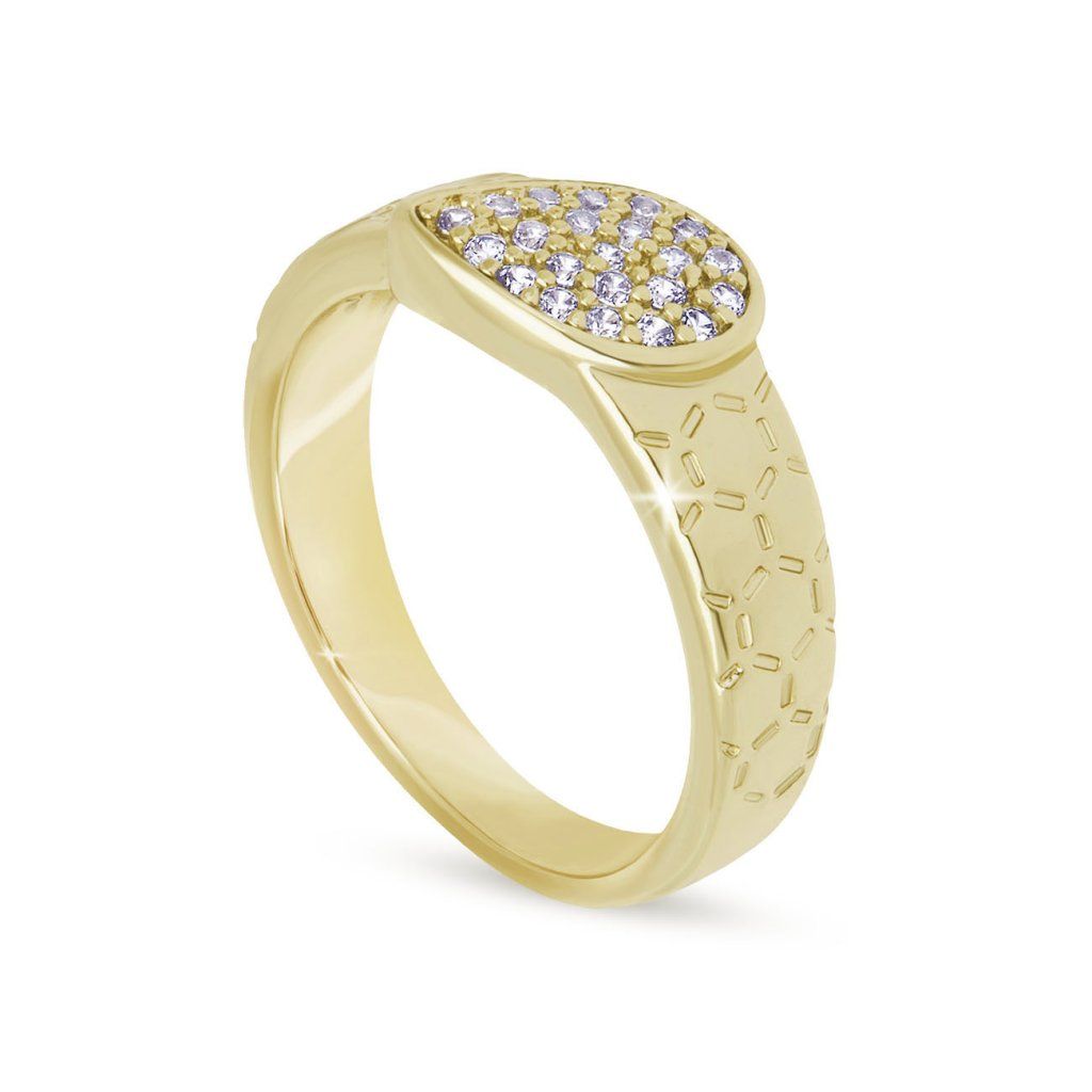 Un inel elegant cu un design neconvențional, care atrage prin motivul în formă de picătură, împodobit cu zirconii strălucitoare. Relieful mat de pe suprafața inelului creează un contrast sofisticat cu picătura lucioasă și conferă bijuteriei un caracter deosebit. O alegere perfectă pentru femeile care caută un accesoriu delicat, dar excepțional.