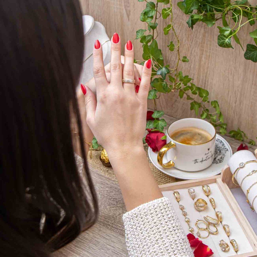 Metal rodiat – Bijuteria este fabricată dintr-un metal rezistent, cu un strat de rodiu, care îi conferă un luciu ridicat, îl protejează de zgârieturi și asigură o durată lungă de viață fără înnegrire. Datorită proprietăților hipoalergenice, este potrivit și pentru pielea sensibilă. Nu conține nichel.