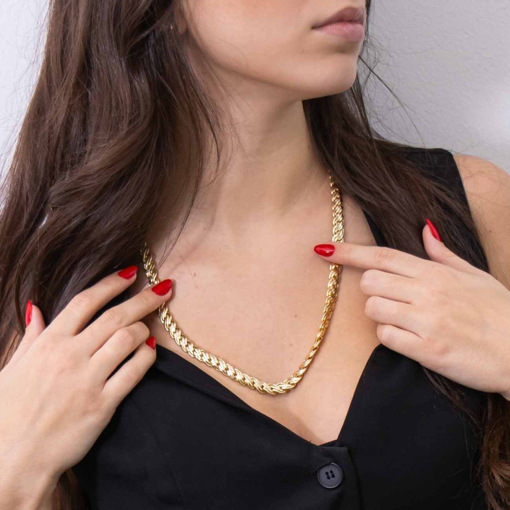 Un lanț elegant și totodată distinctiv, cu un design împletit dens, reprezintă o clasă modernă. Este alegerea ideală pentru cei care caută o bijuterie cu personalitate – strălucește excelent singur sau în combinație cu alte accesorii.