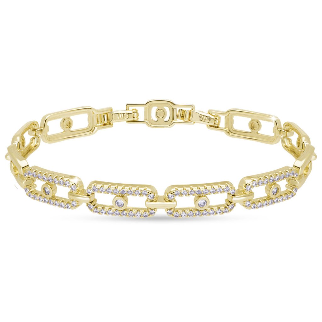 DUBAI 3052 Brățară placată cu aur cu zale dreptunghiulare și zirconii clare