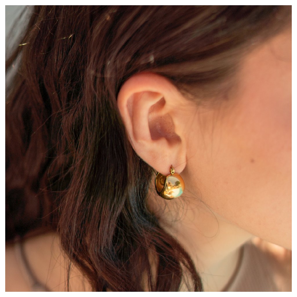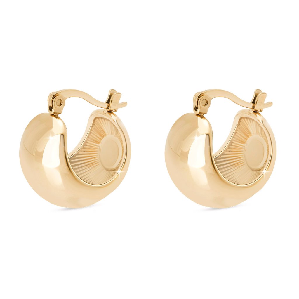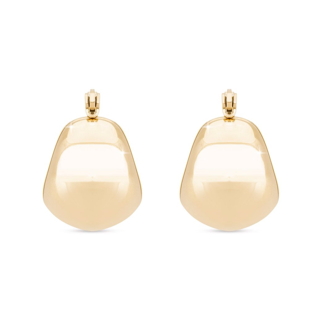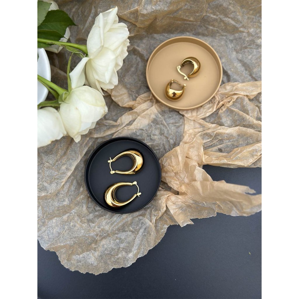 Inima, ca simbol al iubirii și al tandreței, prinde viață în acești cercei moderni din oțel chirurgical, cu un finisaj lucios placat cu aur. Liniile netede și rotunjite conferă bijuteriei un aspect sofisticat, perfect atât pentru o ținută simplă, cât și pentru o rochie de seară. În plus, închiderea practică cu clips asigură o purtare confortabilă.