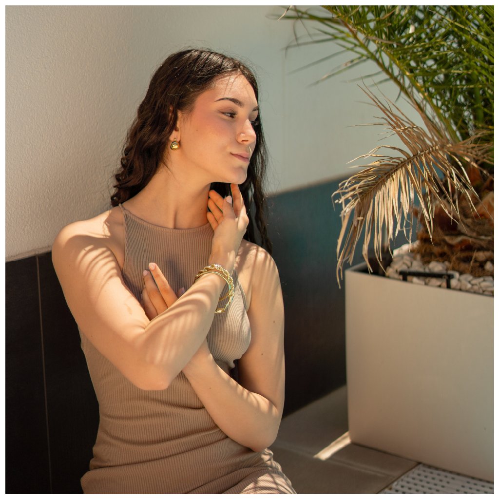 Oțel chirurgical – Bijuteria este fabricată din oțel chirurgical extrem de rezistent, care își păstrează luciul, nu își schimbă culoarea și este hipoalergenic. Este potrivită și pentru pielea sensibilă și, datorită durității sale, rezistă la zgârieturi.