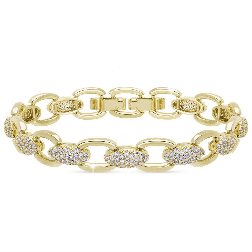 Colier de lux format din zale ovale lucioase și bogat împodobit cu zirconii strălucitoare va atrage prin aspectul său distinctiv și compoziția elegantă. O complement perfect pentru femeile care iubesc bijuteriile cu o notă de stil glamour – ideal pentru seară și ocazii festive.
