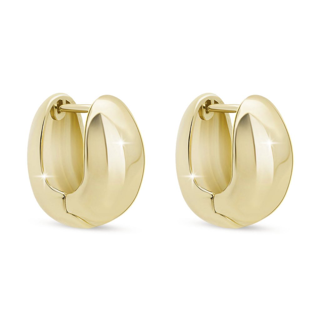 Acești cercei ovali cu aspect masiv impresionează prin designul lor curat și lucios. Suprafața netedă, oglindită, în combinație cu tonul cald al metalului placat cu aur, conferă bijuteriei un aspect luxos, care iese în evidență la orice ocazie. Datorită închiderii cu clapă, se pun ușor și sunt confortabili de purtat toată ziua.