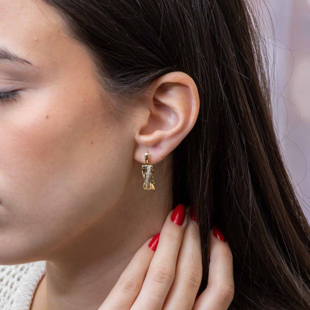 Cercei rafinați și discreți, care combină strălucirea zirconiilor cu liniile grațioase ale decupajului geometric. Forma lată, rotunjită, arată elegant, în timp ce închiderea rusească asigură o purtare sigură și confortabilă pe tot parcursul zilei. Un accesoriu grozav pentru ținute formale și casual.