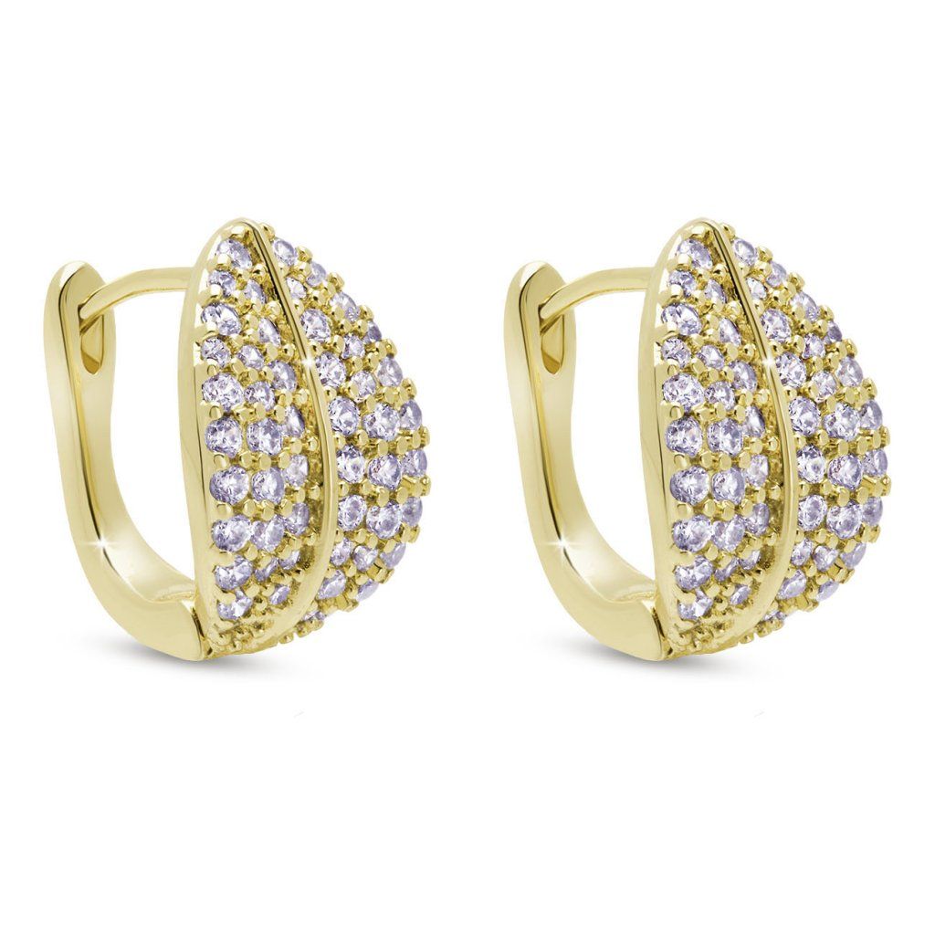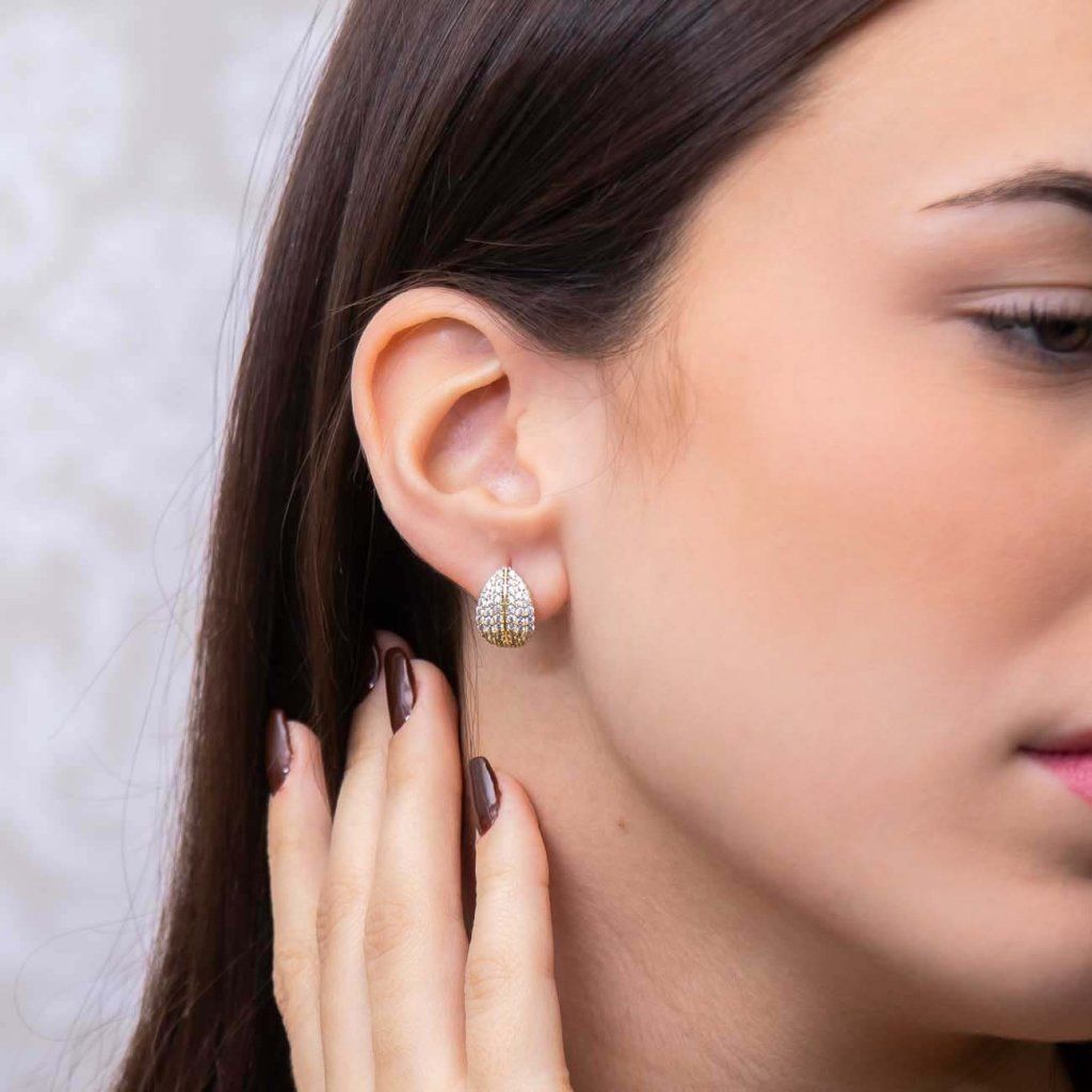 Cercei placati cu aur din metal rodiat cu zirconiu. Bijuterie distinctivă, strălucitoare și atemporală pentru un stil elegant.
