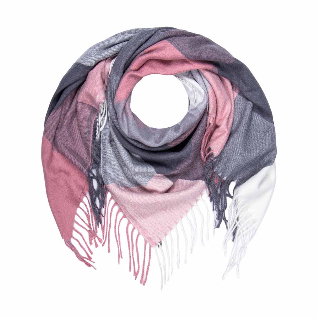 Eșarfă de damă călduroasă, model carouri roz pudră 7200821-4