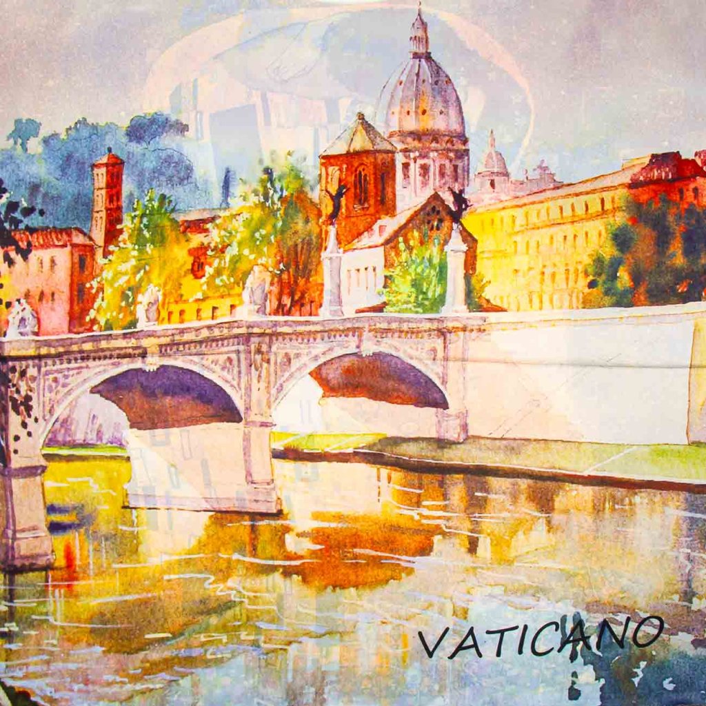 Eșarfă de damă cu imprimeu de pictură - Vaticanul – Podul Sfântului Înger și Sărutul 9001637 -30