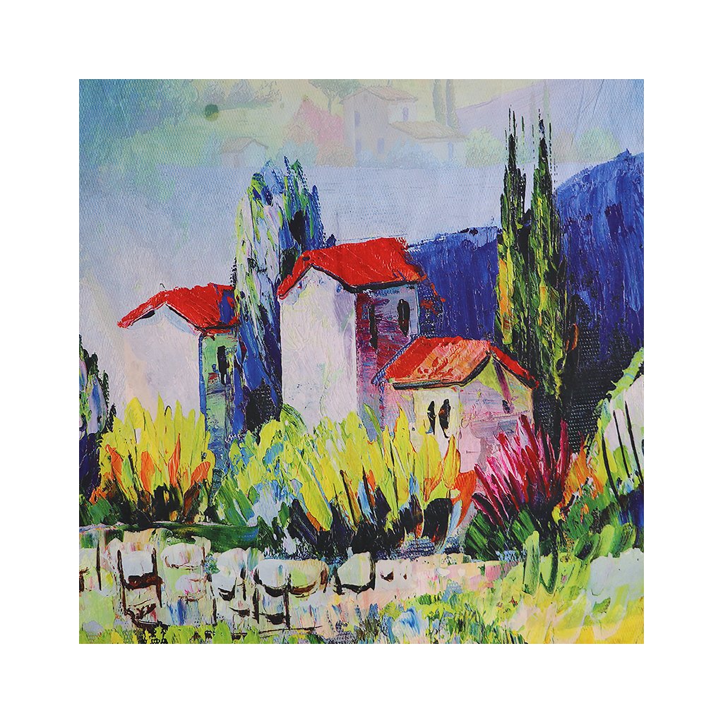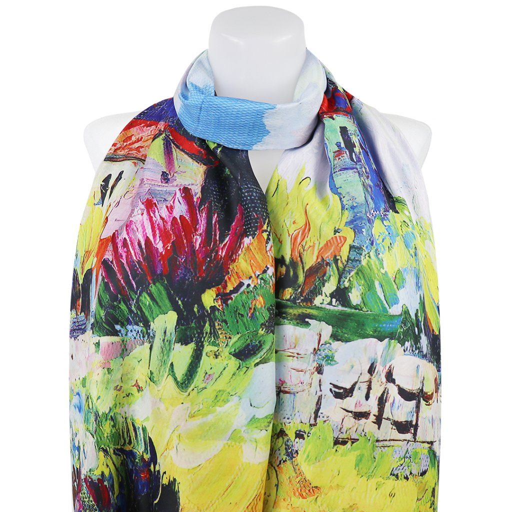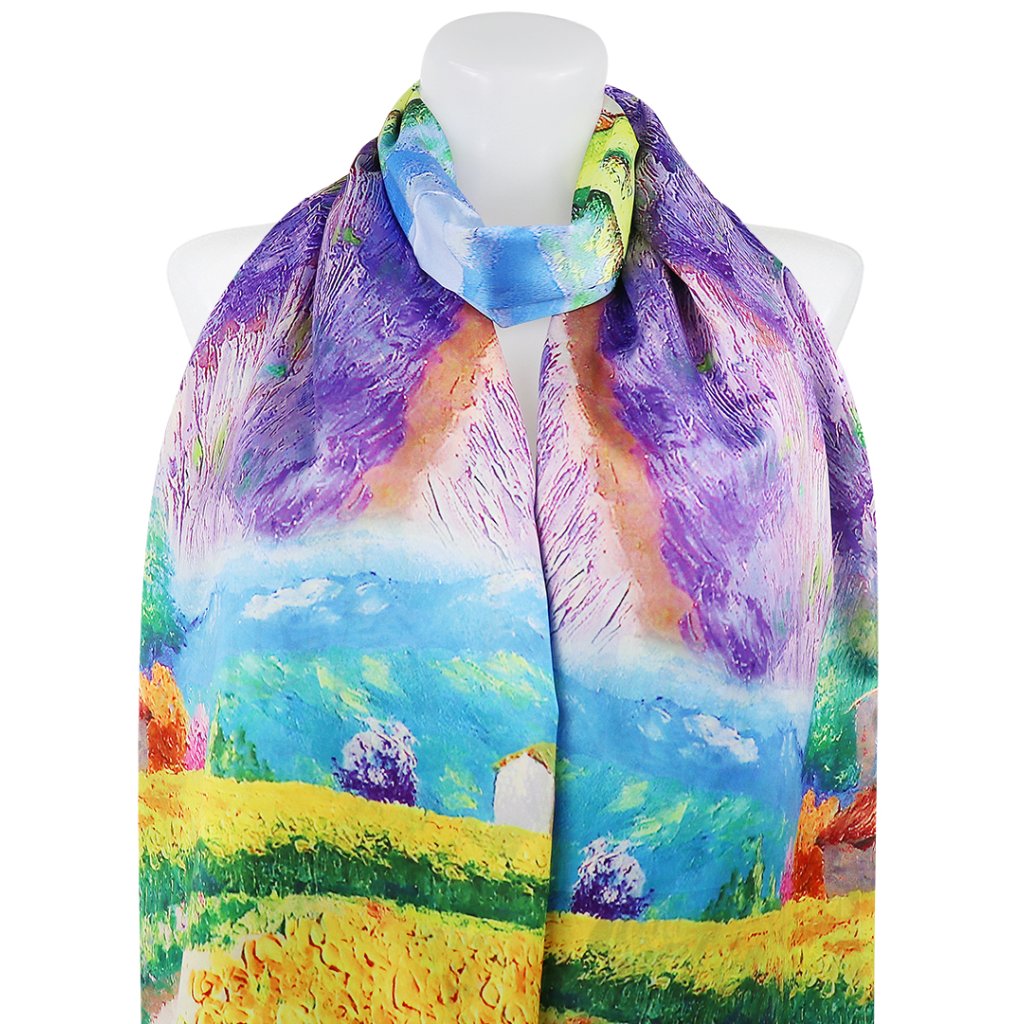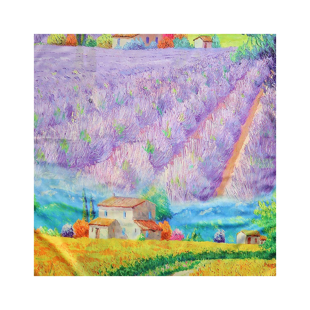 Eșarfă dreptunghiulară de mătase față-verso damă 3130-03 pictură, câmp de lavandă - case 7200676