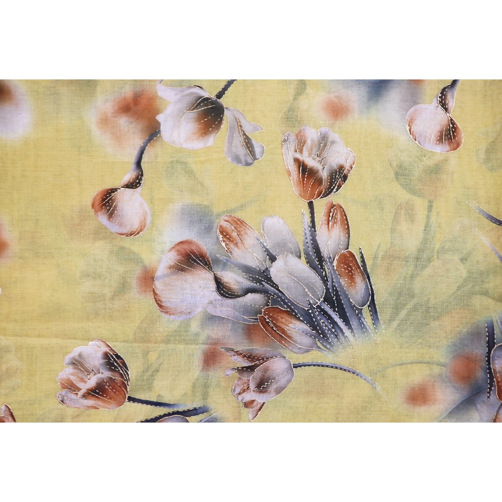 Eșarfă dreptunghiulară pentru femei imprimată cu flori, cu fir auriu - galben 7200534-1